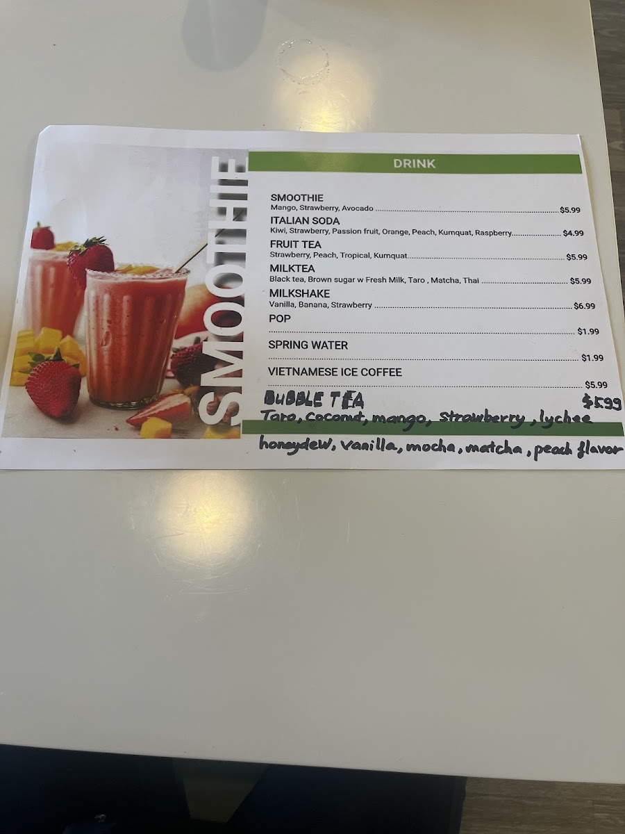 Don’t miss out on a refreshing drink to accompany your meal! Opt for the rich and delightful Vietnamese Iced Coffee (CA$5.99) or a fruit-filled Smoothie (CA$5.99) that’s perfect for cleansing your palate and enhancing your dining experience.